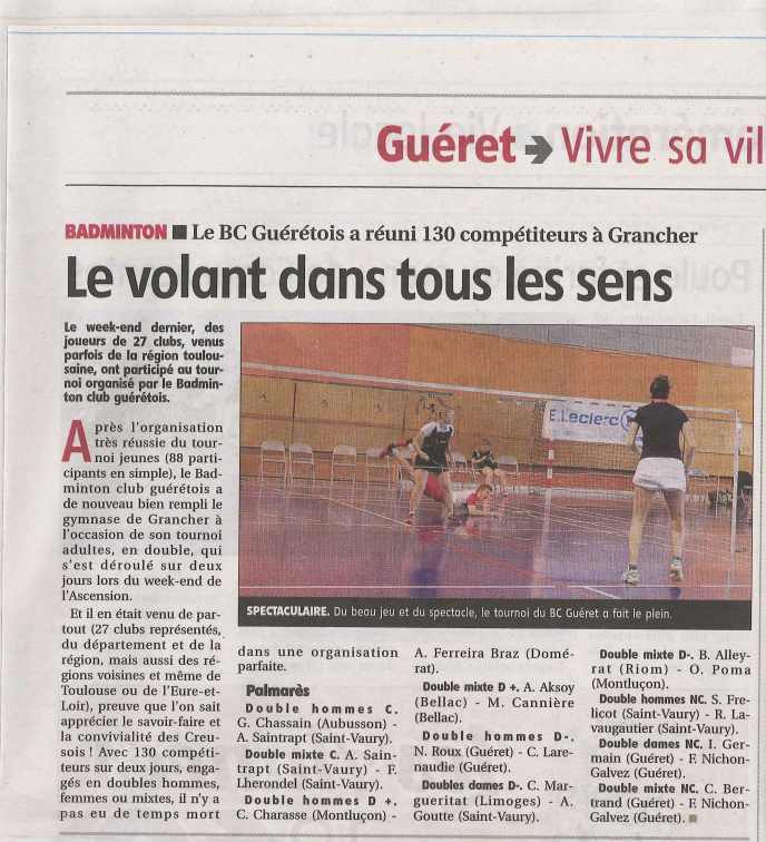 Tous les résultats disponibles : http://badiste.fr/resultat-tournoi/tournoi-de-gueret-2014-63078.html